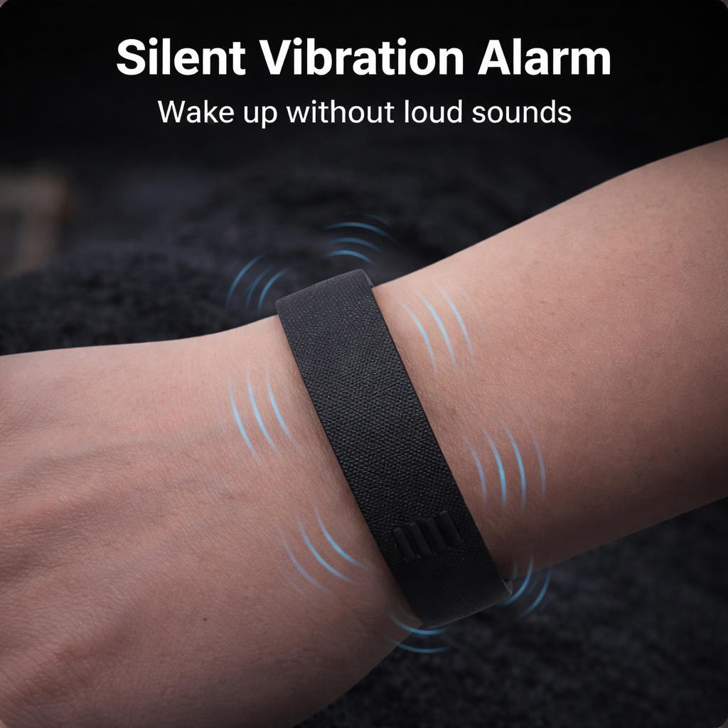 No. The vibration happens only on your wrist, meaning there is no sound to disturb people sleeping nearby. This makes it ideal for shared bedrooms, partners, roommates, or early schedules.